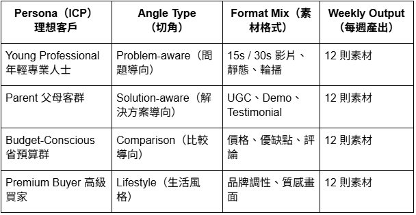 二、【最重要】廣告素材發想架構(理想客戶 ICP ×切角 Angle ×素材型式 Format)