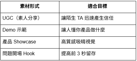 結論:每個族群都需要不同切角 × 不同格式的素材。