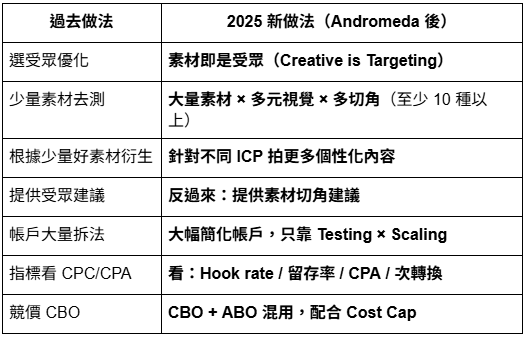 不再用大量組合式帳戶,未來靠「素材 × 迭代速度」。